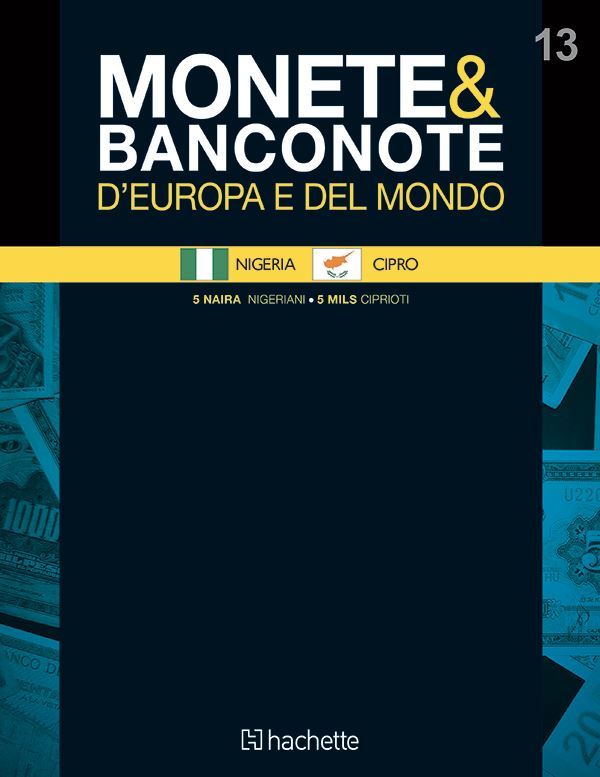 Fascicolo + banconota 5 Naira (Nigeria) + moneta 5 Mils (Cipro)