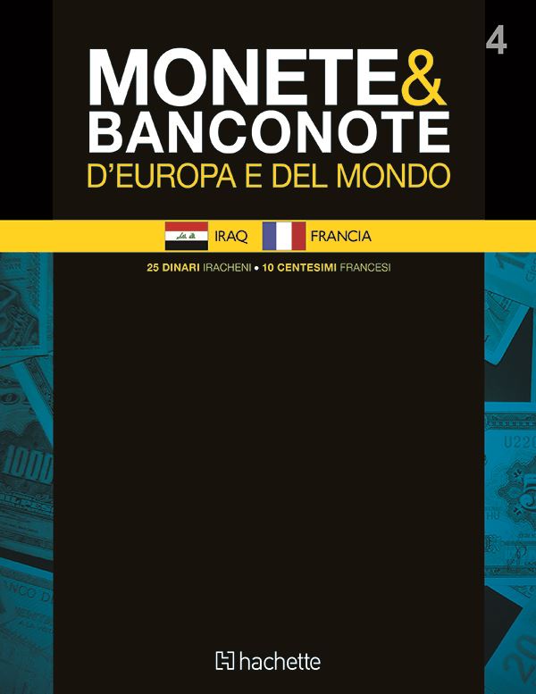 Fascicolo + banconota 25 Dinars (Iraq) + moneta 10 Centimes (Francia) + cartelletta porta banconote